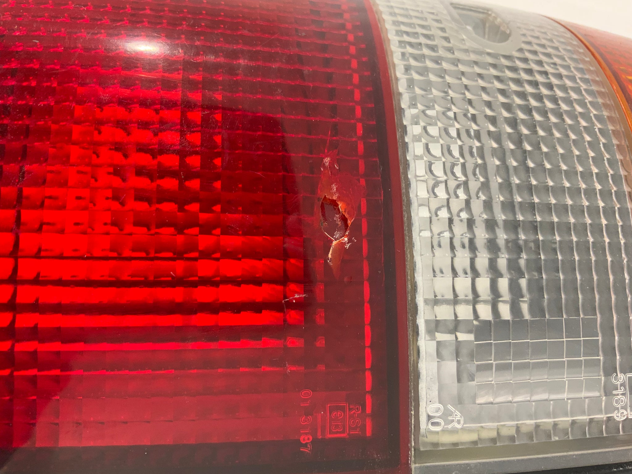 Used OEM Toyota tail light housing / lens for left side. Good condition with some minor wear. One small crack / chip on lens. Condition notes are shown in photos. Comes with just housing.