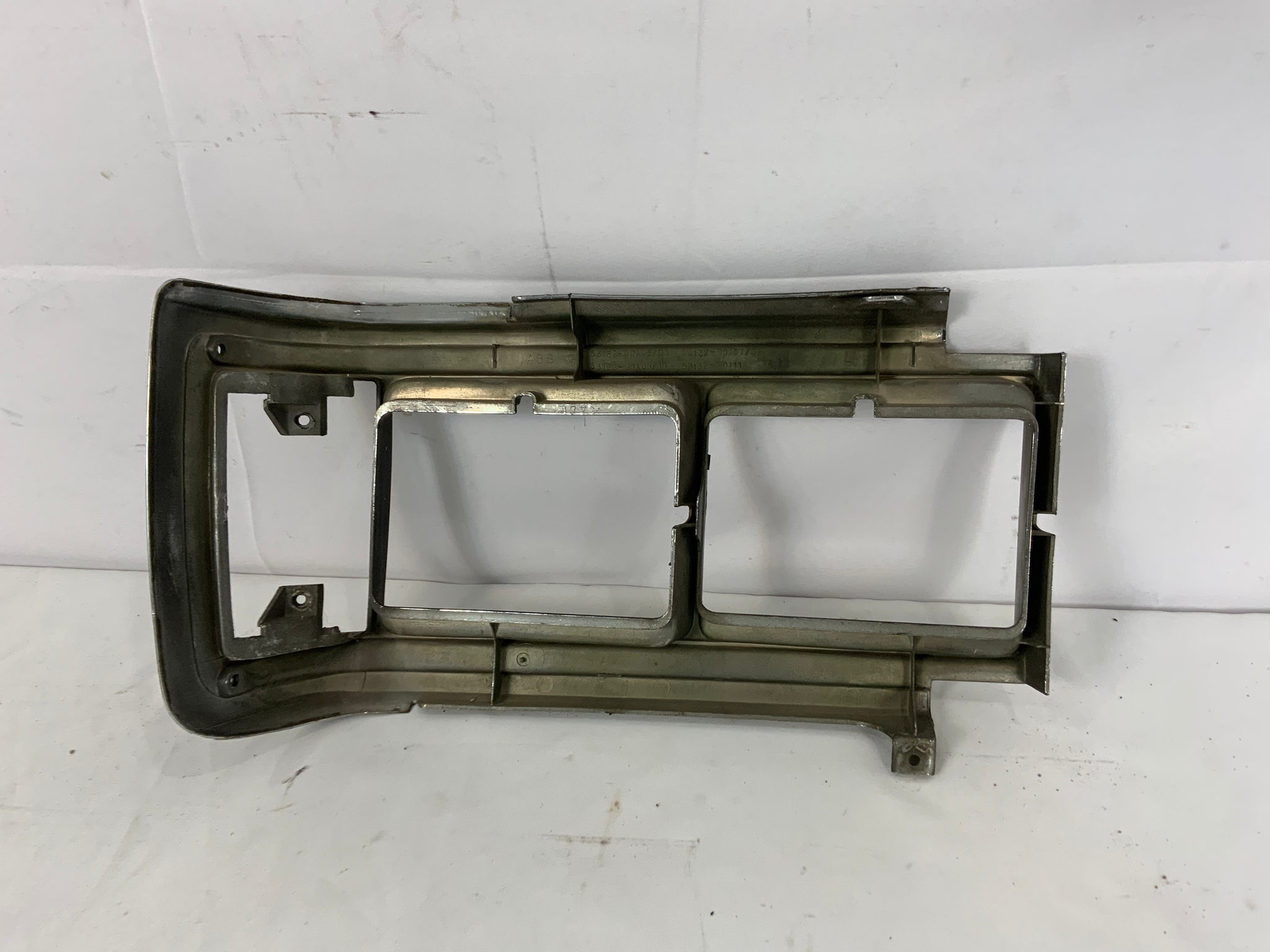 Used OEM Toyota left-hand / driver's side headlight bracket. Good condition overall. Most of the chrome is fallen off. The plastic and rest is solid. Fits FJ62 8/1987-1/1990.