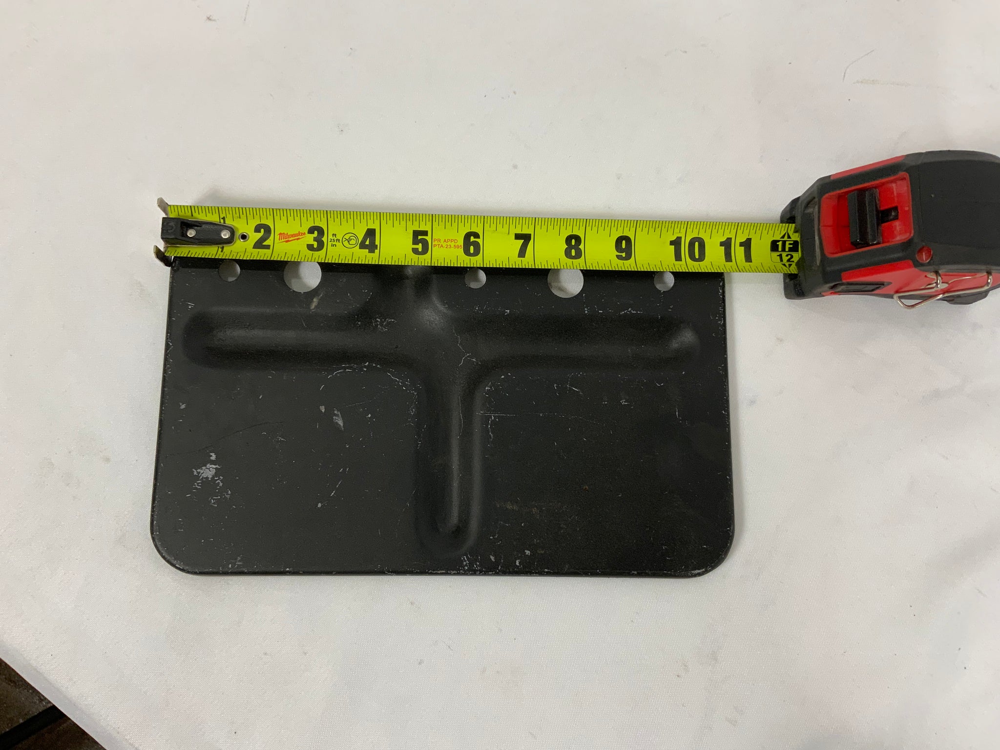 Used OEM Toyota FJ40 splash guard for under the front left side of engine bay near the steering gear box. This is bolted up right to the underside of the chassis directly forward of the steering box mount. This guard does not have a specified year range so check your frame to confirm that you have the bolt holes to match our measurement photos. The 3 smaller holes on this guard are where bolts are placed and the 2 larger holes are openings for frame rivets. Color and appearance may vary slightly.