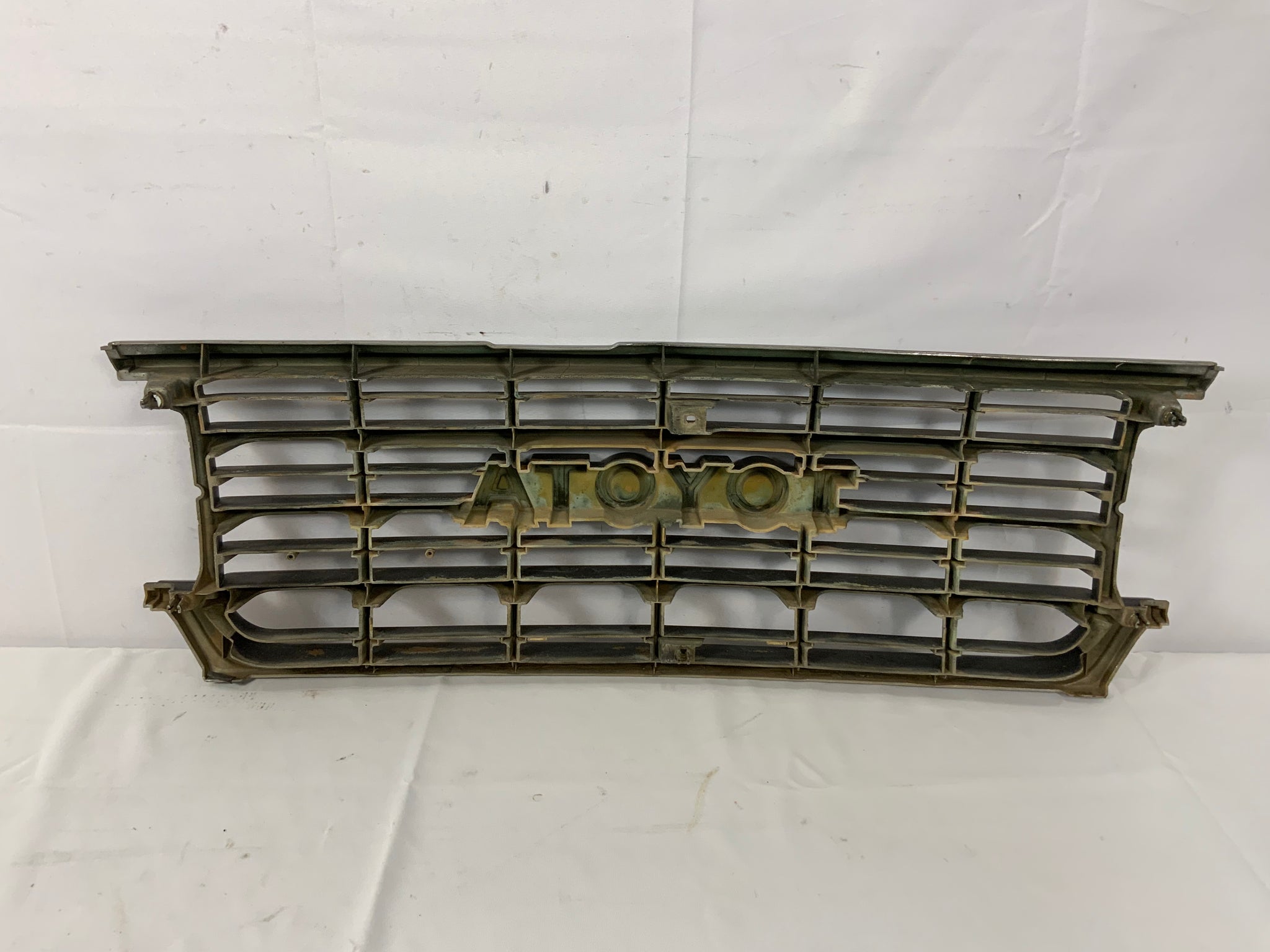 Used OEM Toyota grille. Fits FJ62 8/1987-1/1990. There is a half broken tab as shown in photos as well as some peeling of the chrome. Otherwise solid condition.